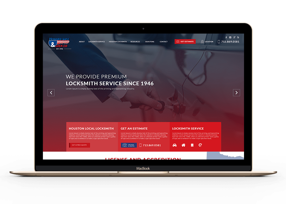 Howard Safe and Lock is a full service lock and safe installation, repair, and maintenance service located in Houston, Texas. They specialize in installation, and on-call services like emergency lock and safe unlocking service, key duplication, and automotive locksmith service. They required a website to differentiate them from their competition, highlighting their professionalism, licenses and accreditation, and industry seasoned skills.