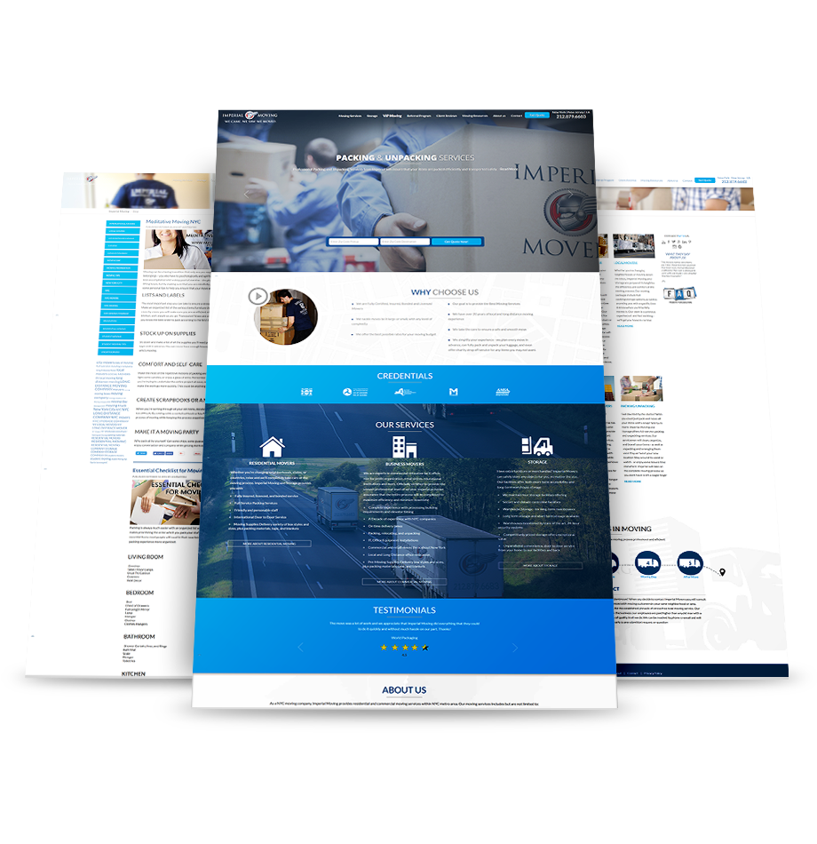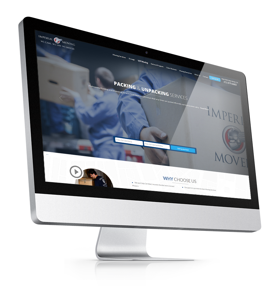 Imperial Moving offers complete moving and storage services in the NYC area - the priorities for this website heightened brand visibility by detailing their services in a clean and accessible design. Our fullscreen, colorful graphic design heightens their brand presence with a bespoke and minimal design.